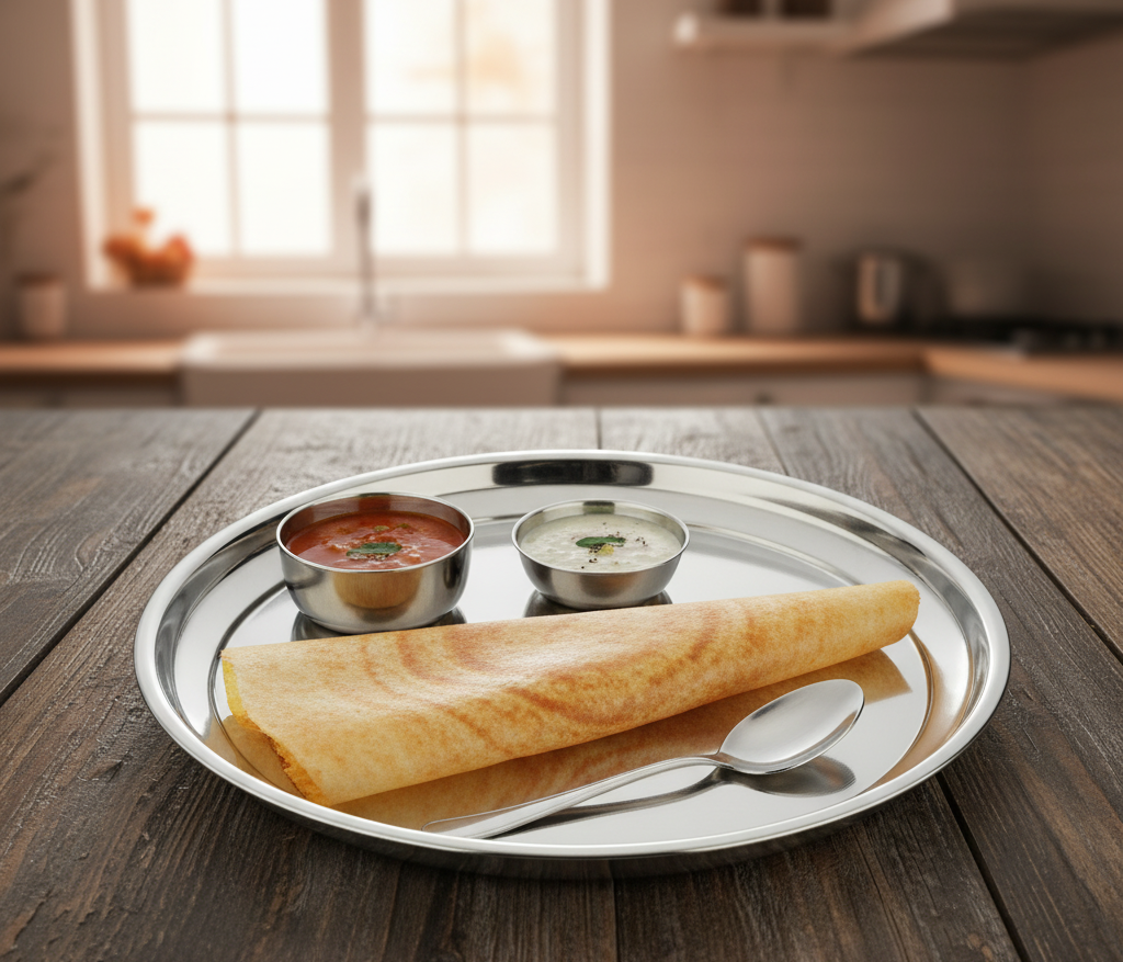 “I’ve been using the SS China Plate / Dosa Plate for a few weeks, and I must say the quality is outstanding. The stainless steel is thick and durable, and it heats evenly my dosas turn out perfectly crispy every time!